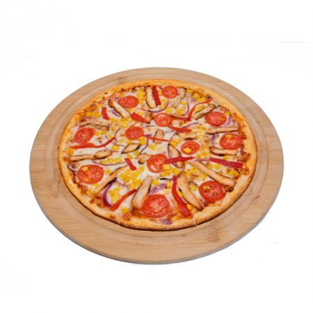 Crunchy’s Pizza Sosu, Mozzarella Peyniri, Izgara Tavuk, Jalapeno Biber, Çeri Domates, Soğan, Kırmızı Köz Biber, Mısır