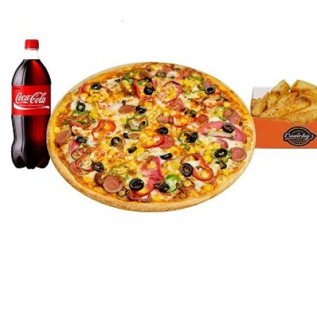 1 Büyük boy pizza, 1 Patates kızartması, 1 LT İçecek