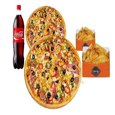 (3-4 Kişilik) 1 ORTA boy pizza, 1 EXTRA boy pizza, 2 Porsiyon Patates kızartması, 1 LT İçecek